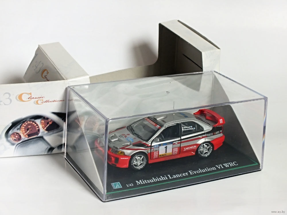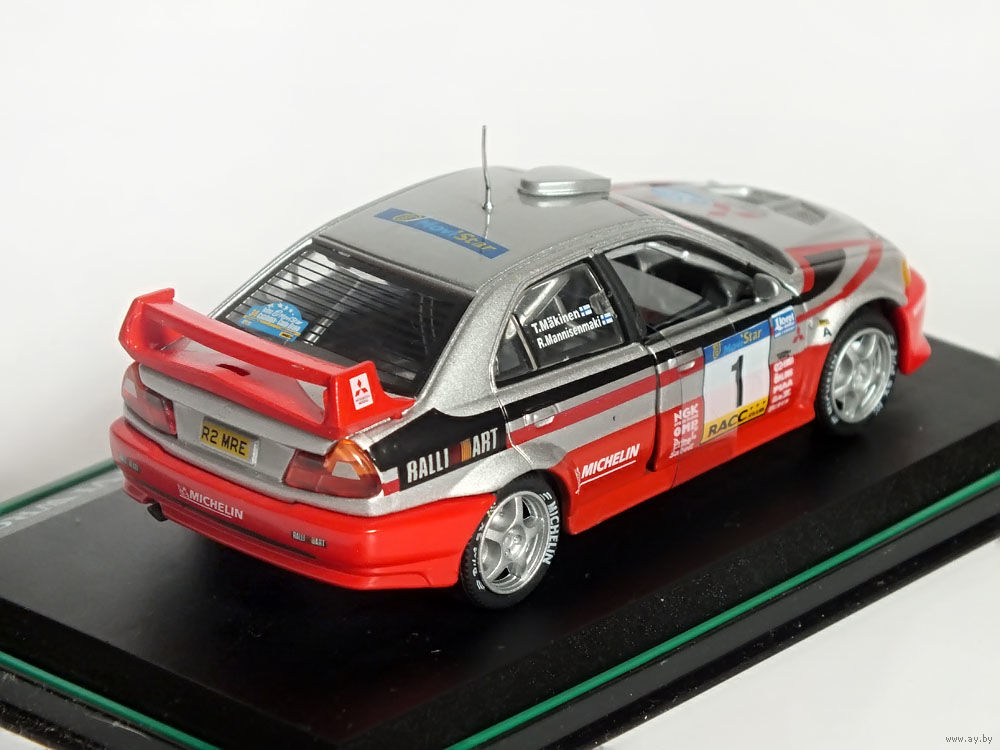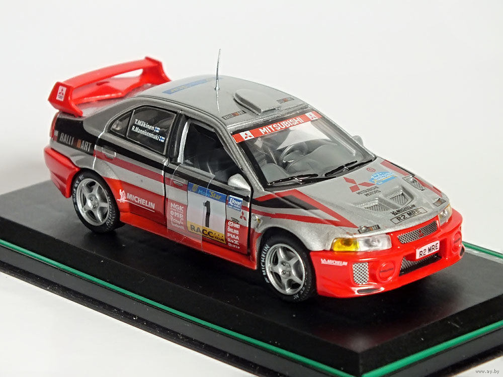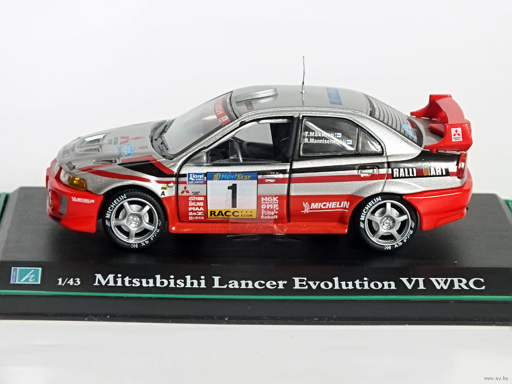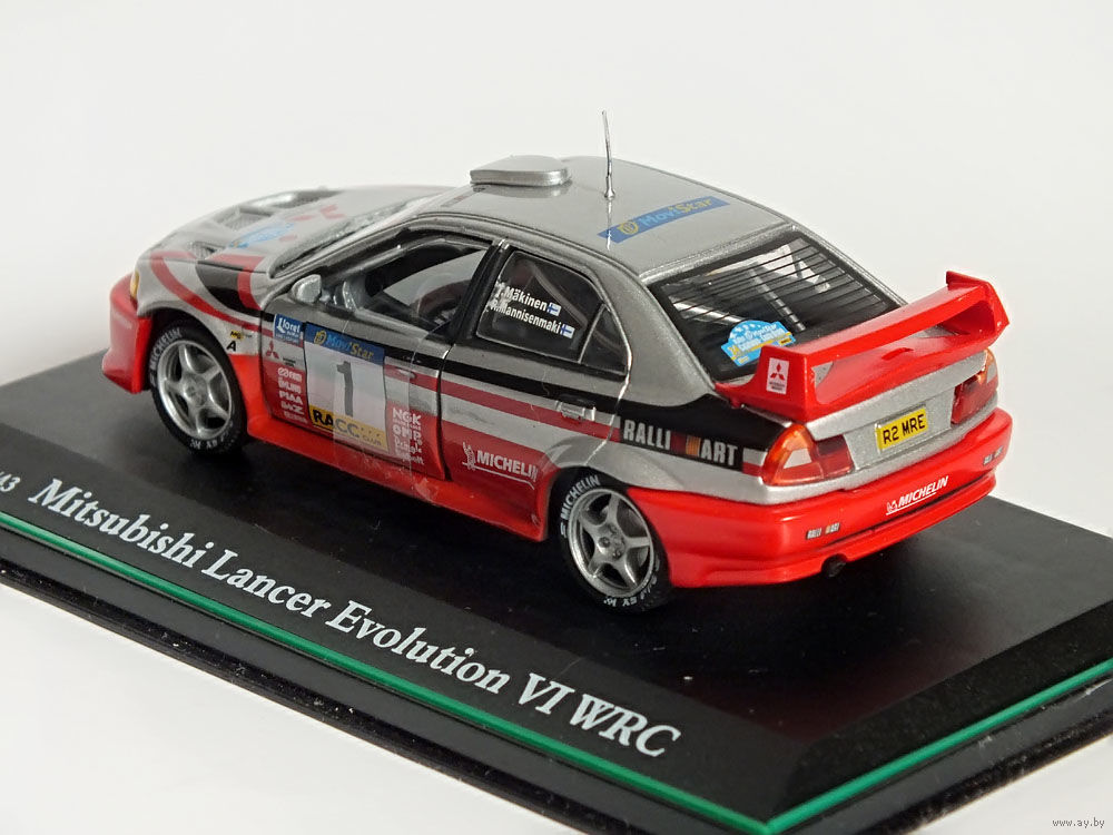 Масштабная модель автомобиля Mitsubishi Lancer Evolution VI WRC "Rally Monte Carlo" #1 Makinen / Mannisenmaki. Масштаб 1:43. Производство "Hongwell".