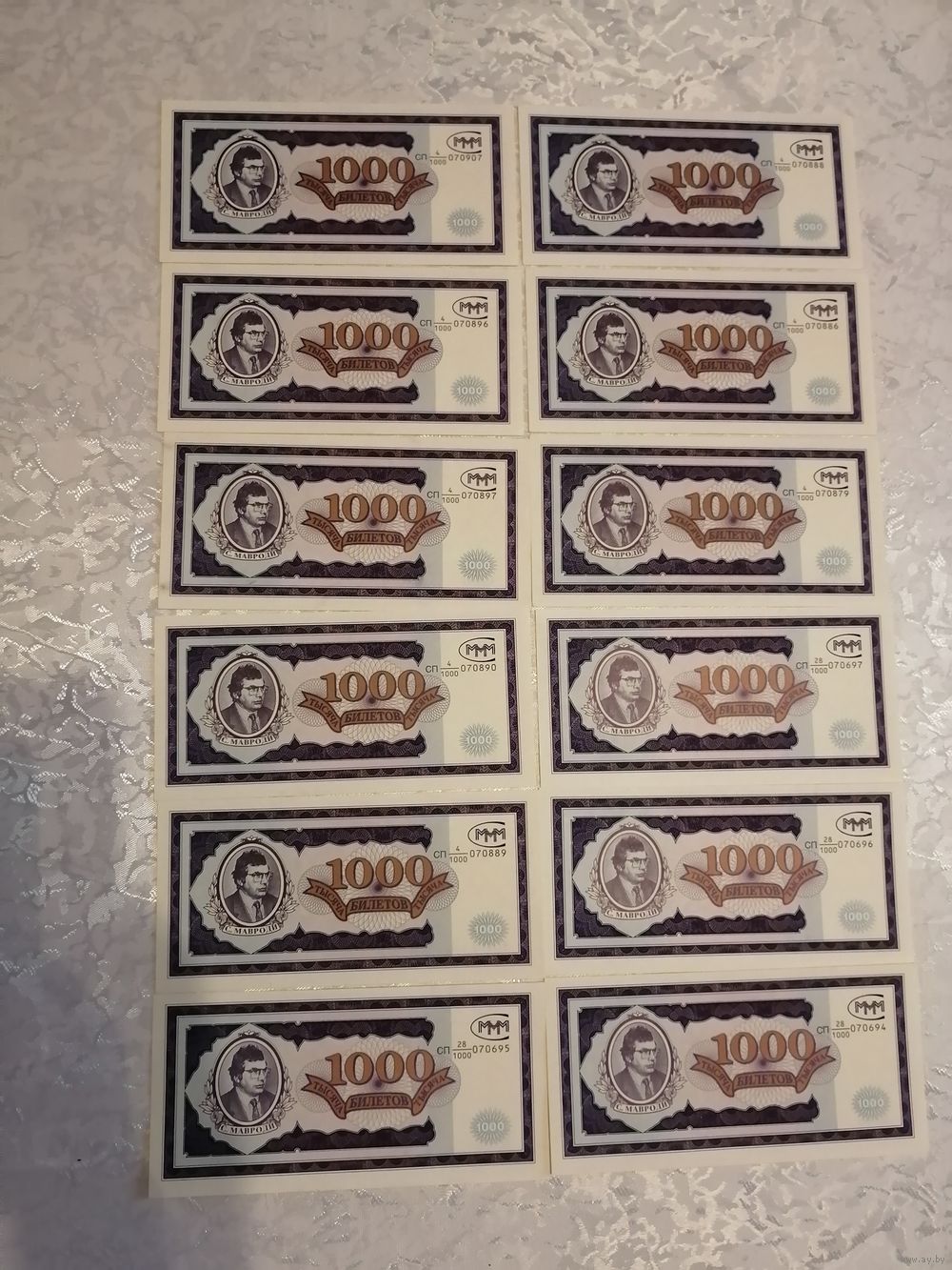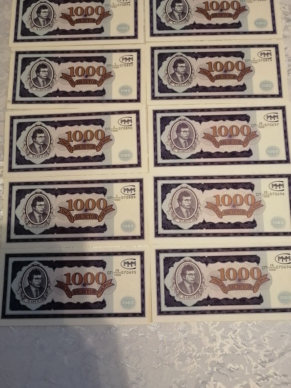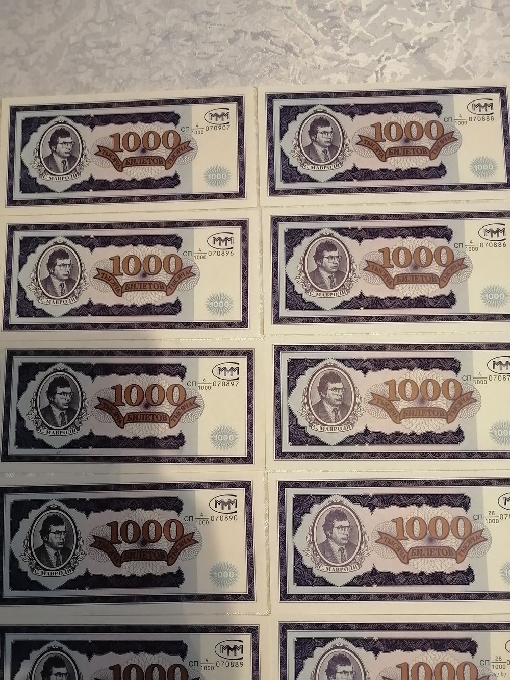 Это подленные билеты МММ , покупались по паспорту с указанием города и пункта выдачи этих билетов, до них были акции формата А4, билеты пошли именно с 1994 года, покупал сам лично.... НЕ ПОГАШЕННЫЕ.... Цена за один... Звоните.... Спасибо