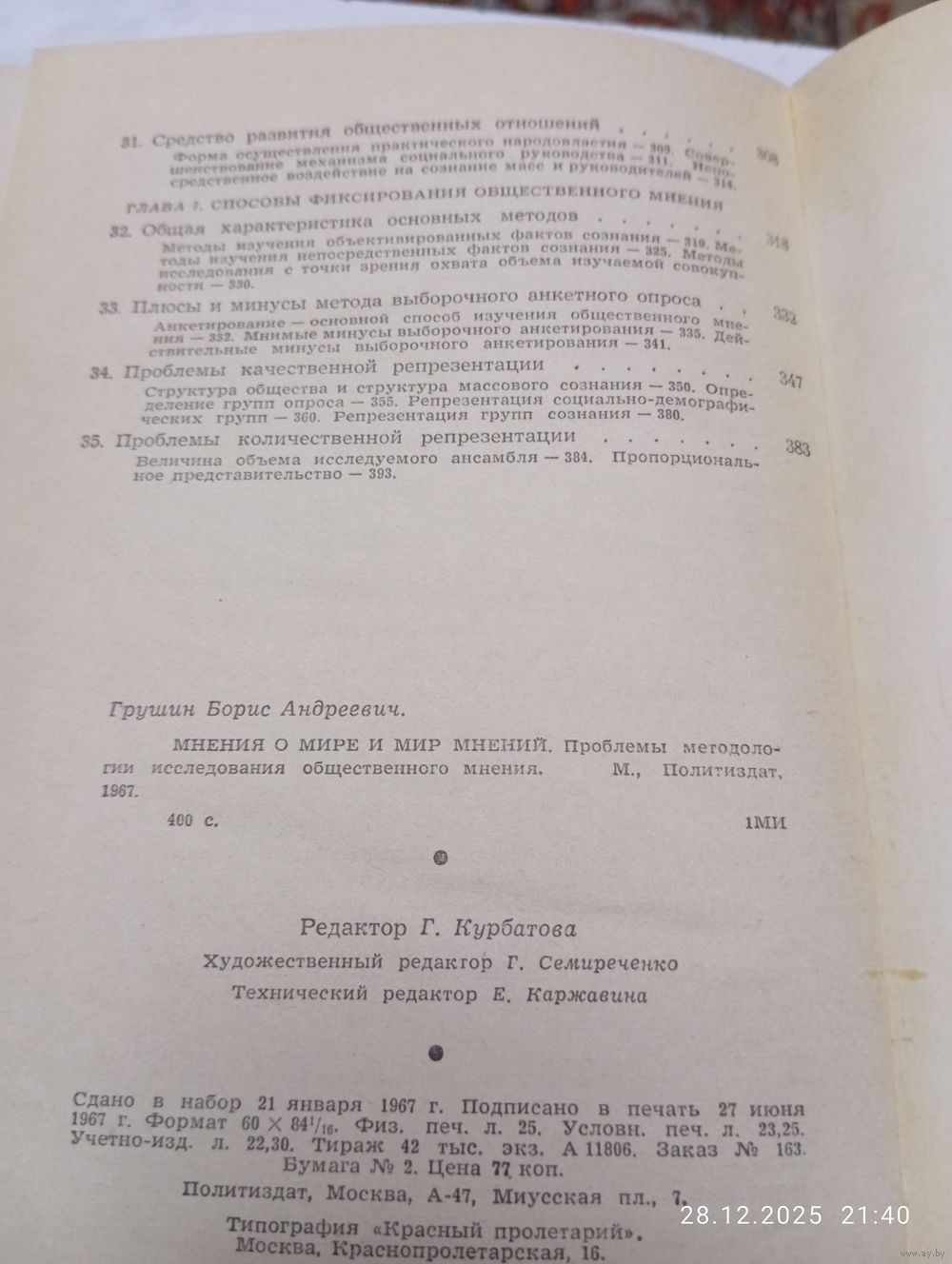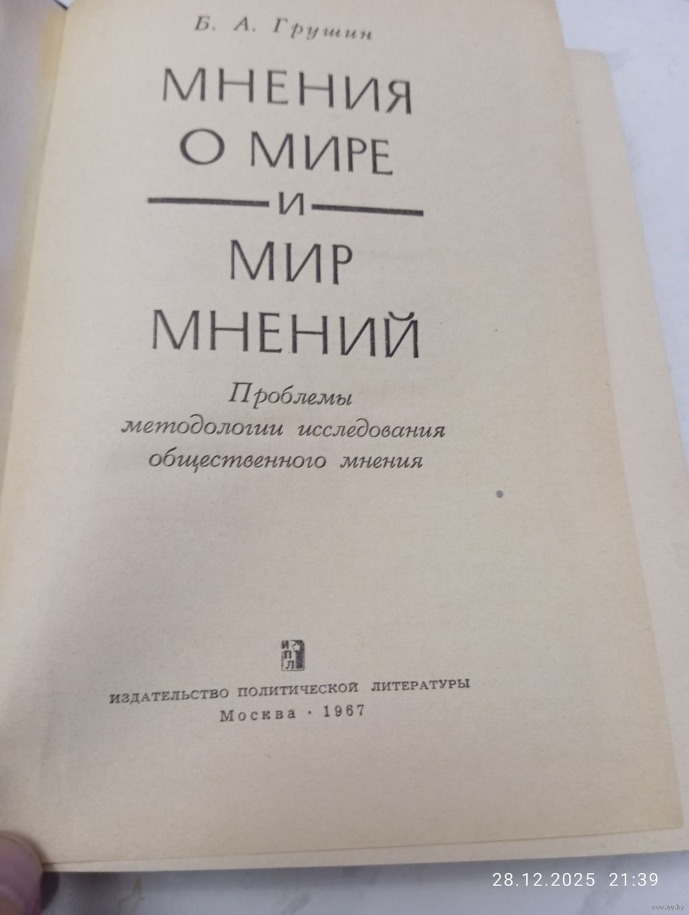 Мнения о мире и мир мнений. Грушин Б. Редкая. Политиздат 1967. В хорошем состоянии, тв переплет. 400 с. Возможность отправки Белпочтой, полная предоплата на карту Беларусбанк