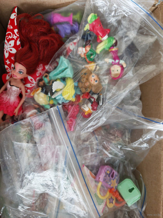 Коробка маленьких фигурок, игрушек, магниты и мн. другое.