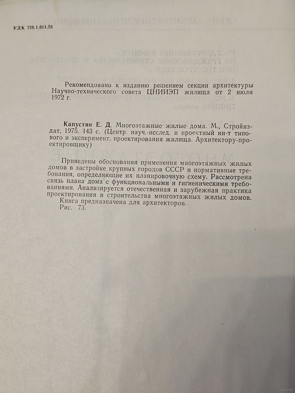 Автор подробно рассматривает обоснование строительства высотных зданий в крупных городах СССР, что делает книгу важным источником для изучения градостроительной политики 1970-х годов.