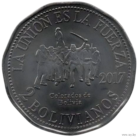 МНОГОНАЦИОНАЛЬНОЕ ГОСУДАРСТВО БОЛИВИЯ. 2 БОЛИВИАНО 2017. UNC. Боливианский полк Colorados