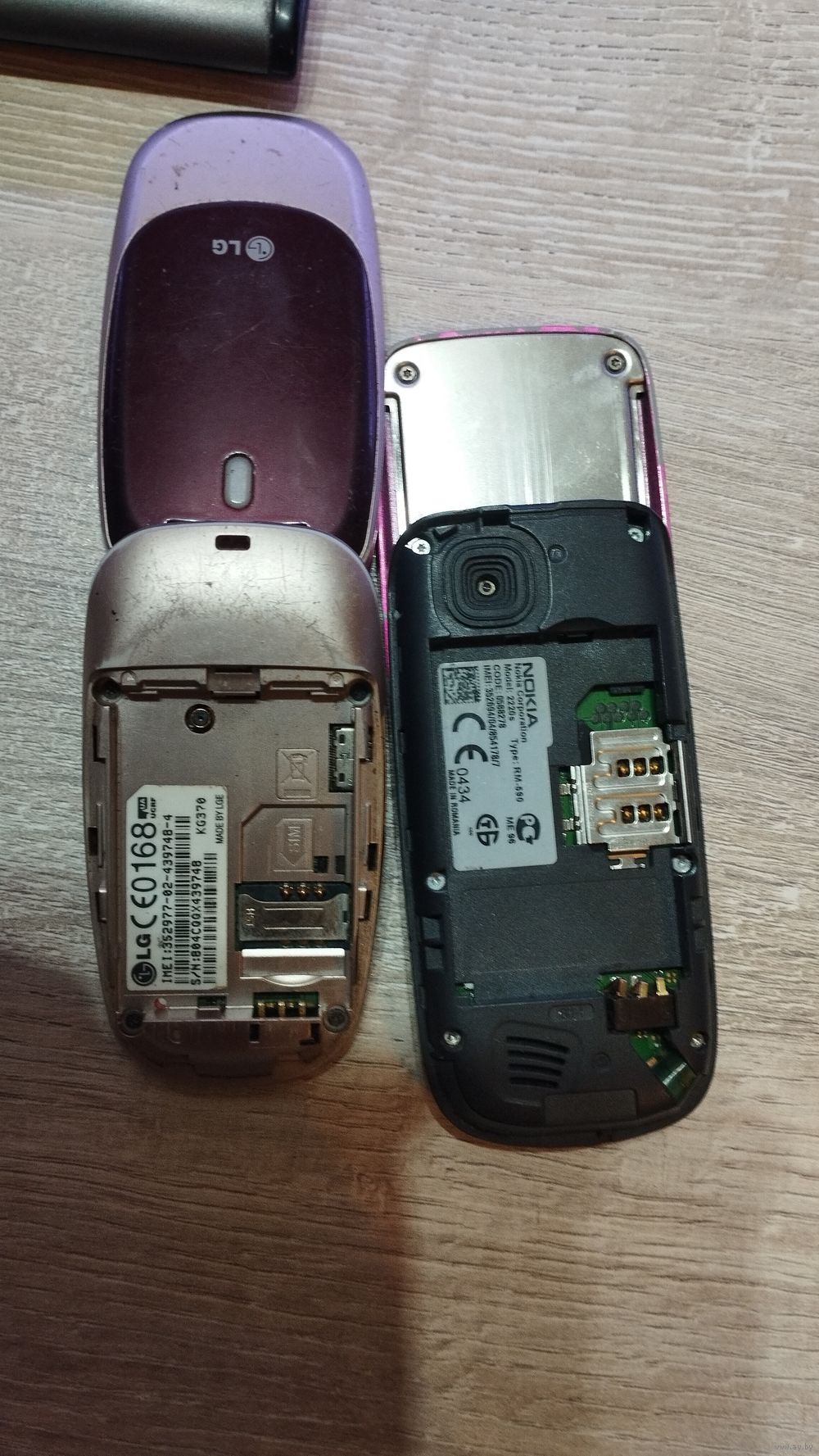 Слайдер и раскладушка. Nokia без задней крышки и LG в сборе, Samsung с аккумулятором