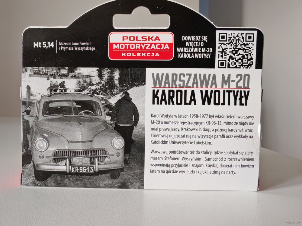 С 1958 по 1977 год Кароль Войтыла владел автомобилем «Варшава М-20» с регистрационным номером KR-96-13, несмотря на то, что никогда не имел водительских прав. Краковский епископ, а позже кардинал, использовал его вместе со своим водителем для поездок на приходские собрания и лекции в Католическом университете Люблина. Он также ездил из Варшавы в столицу, где встречался с примасом Стефаном Вышинским. Автомобиль с теплотой вспоминают друзья и знакомые священника, которые использовали его для походов в горы и сплавов на байдарках летом, а также для катания на лыжах зимой.