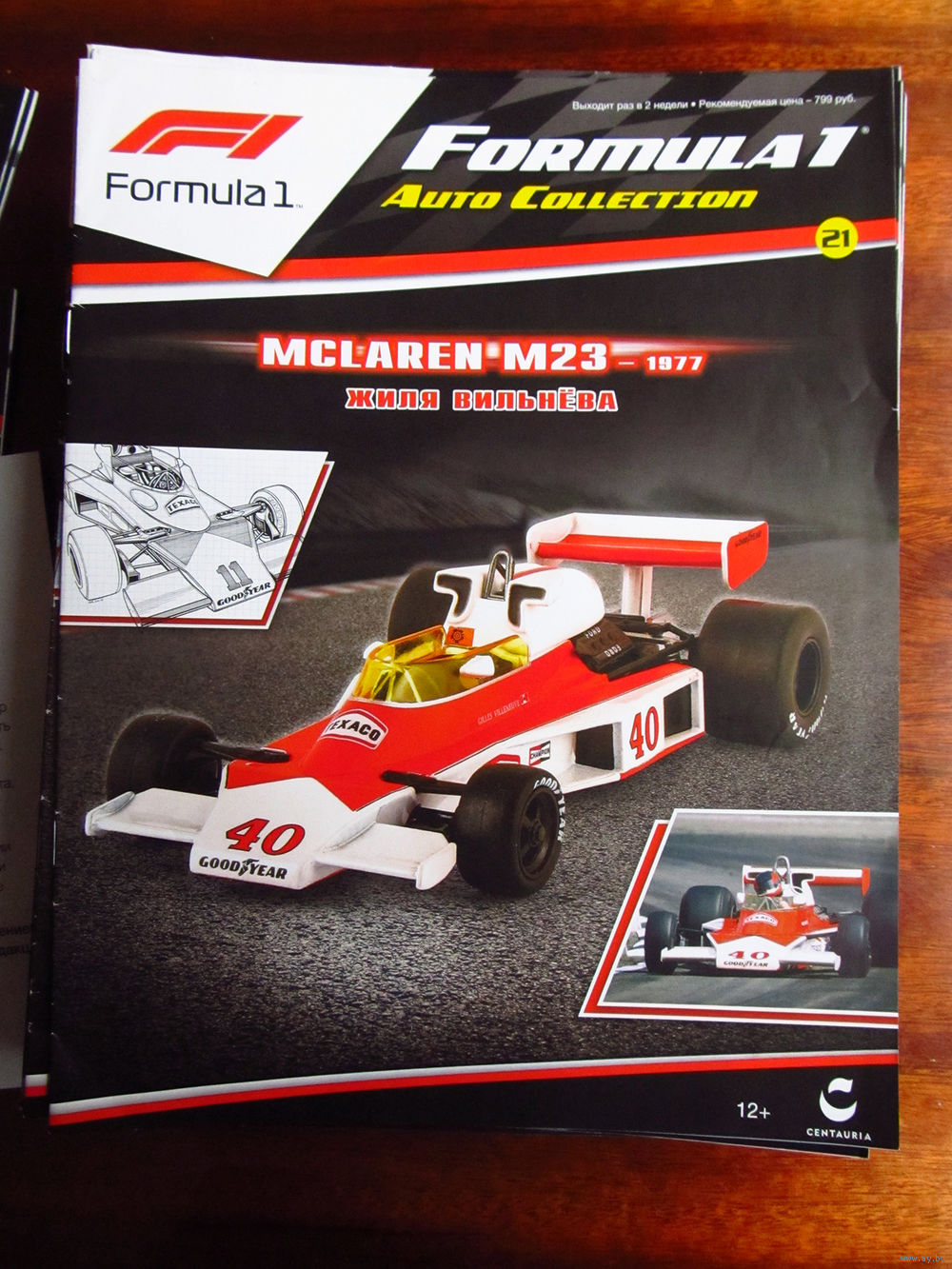 Модель автомобиля 1-43 Фомула 1 Formula 1 F1 McLaren M23 1977 Gilles Villeneuve 1977 British Grand Prix В комплекте модель, бокс, журнал Состояние модель как новая журнал отличное