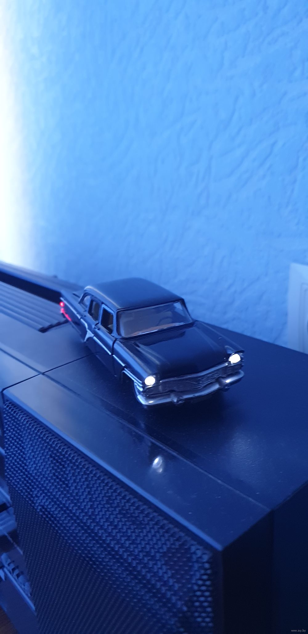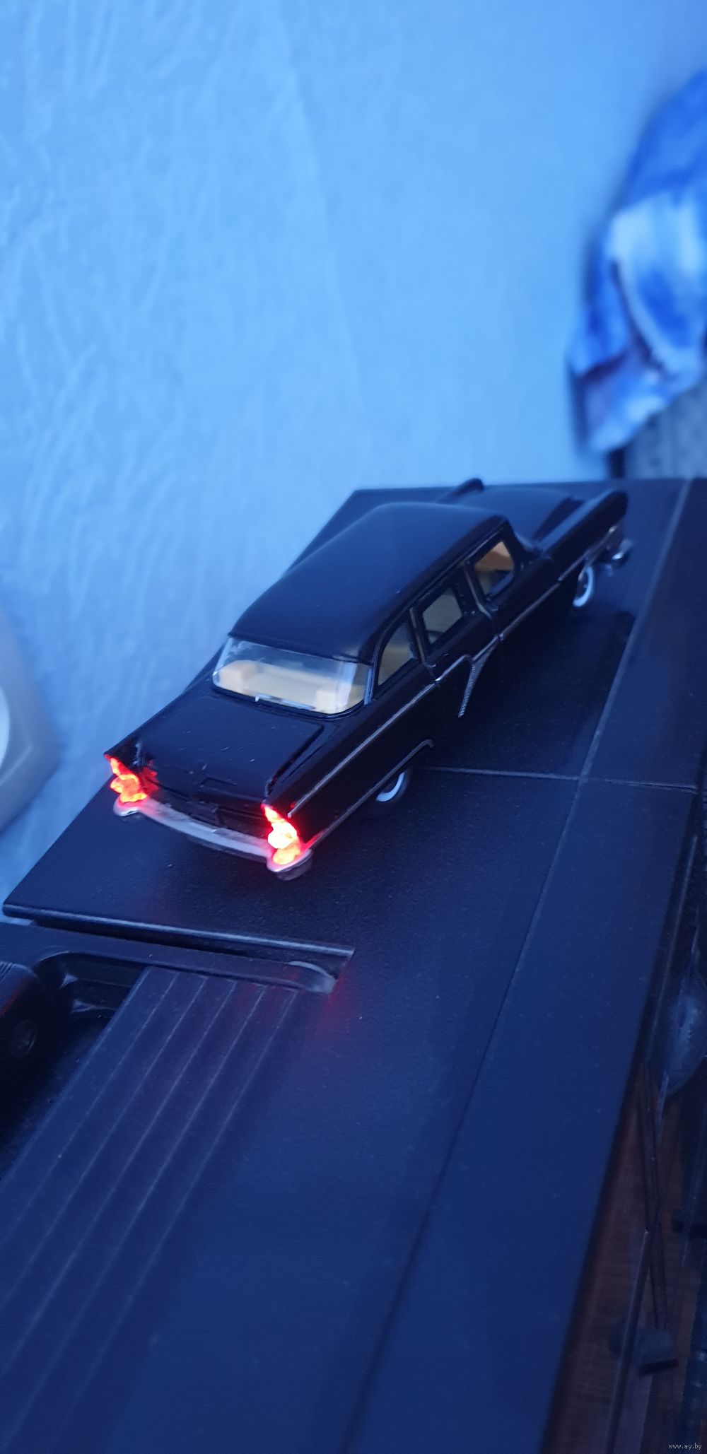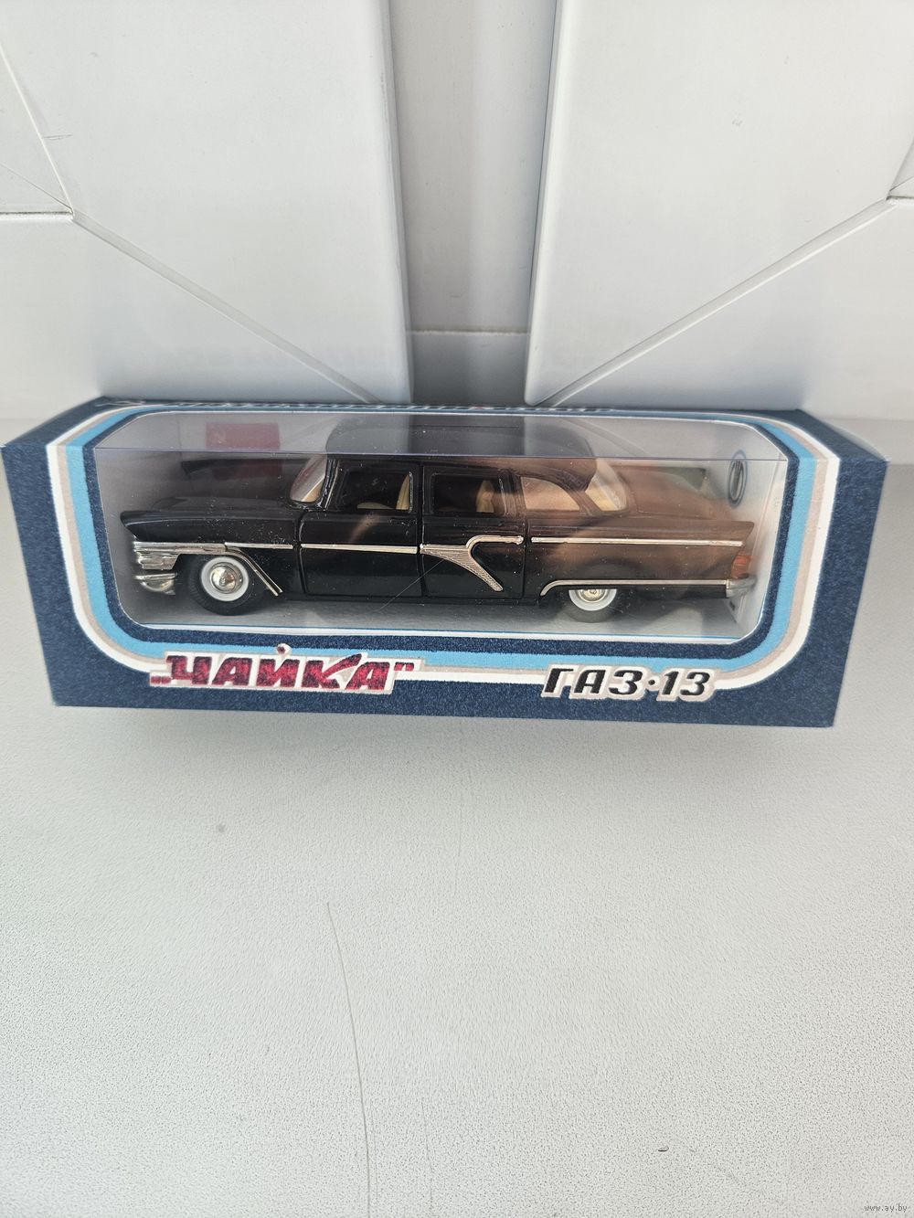 Модель Чайка электрифицированная в отличном рабочем состоянии, от заводской серийной модели отличается работой от одной батарейки, в заводской от двух как на последнем фото, принцип работы такой-же. Коробка репринт в комплекте и магнит.