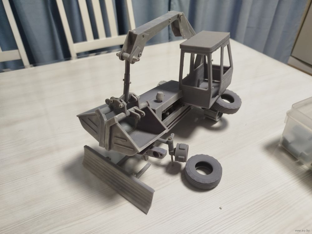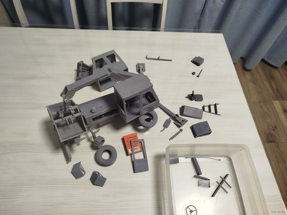 Файлы для этой модели разрабатывалась индивидуально у специалиста из РФ, но дальше фотополимерной печати (жидкой смолой) пробных партий деталей дело у меня не пошло, была напечатана в 43 масштабе модель и проба печати в масштабе 1:18… в данной модели не хватает только задних колес, все максимально подвижно, колеса на подшипниках (в наличии) требуется приложить немного усилий и иметь интересную модель) кому интересно можем пообсуждать вопрос продажи всех файлов для печати данной модели
