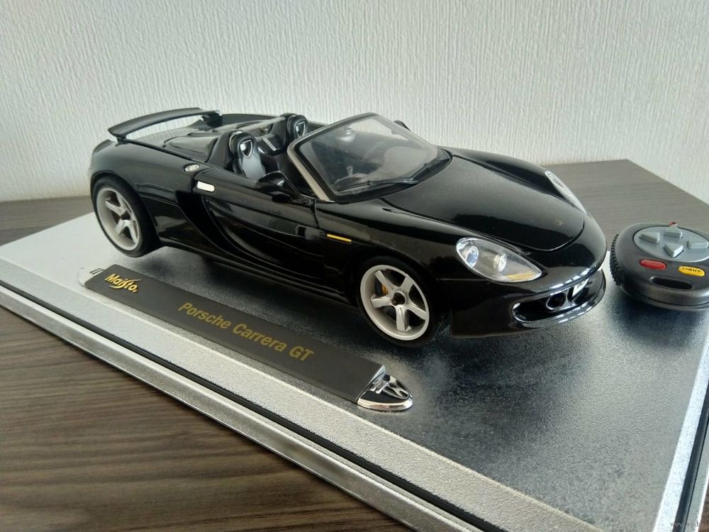 Коллекционная модель Porsche Carrera GT MAISTO в масштабе 1:18 с инфракрасным пультом управления. Металл. Открываются двери, капот, горят фары.