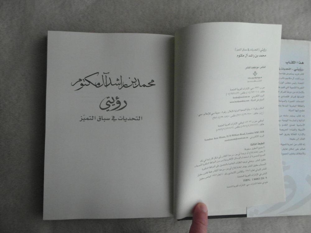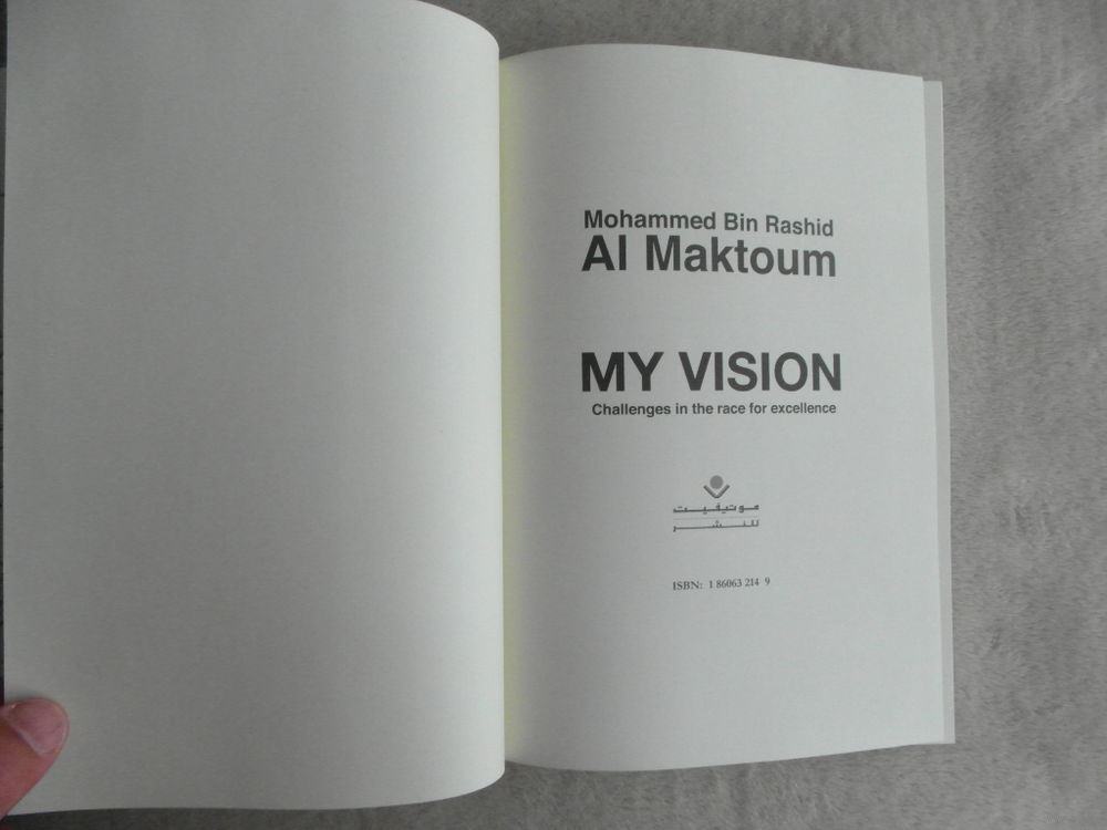 "Мое видение: вызовы на пути к совершенству"— это уникальная книга, в которой Его Высочество шейх Мохаммед бин Рашид Аль Мактум, вице-президент и премьер-министр ОАЭ и правитель Дубая, описывает аспекты уникального опыта развития ОАЭ. Эта молодая страна прилагает все усилия, чтобы достичь совершенства и повысить свой статус от регионального экономического центра до международного уровня. ОАЭ стремится преуспеть в сфере услуг, туризма, экономики знаний и творческих человеческих ресурсов, чтобы достичь всех амбициозных целей в будущем.