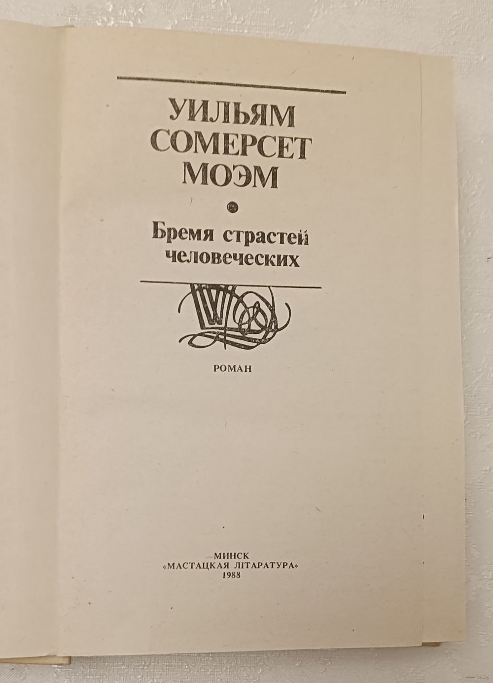 Моэм Уильям Сомерсет. Бремя страстей человеческих: Роман. Мн.: Маст. літ., 1988.-638 с., твердый переплет, обычный формат.
