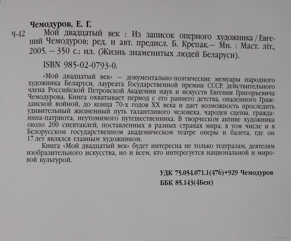 Мемуары главного художника Белорусского государственного академического театра оперы и балета Е.Г. Чемодурова.