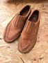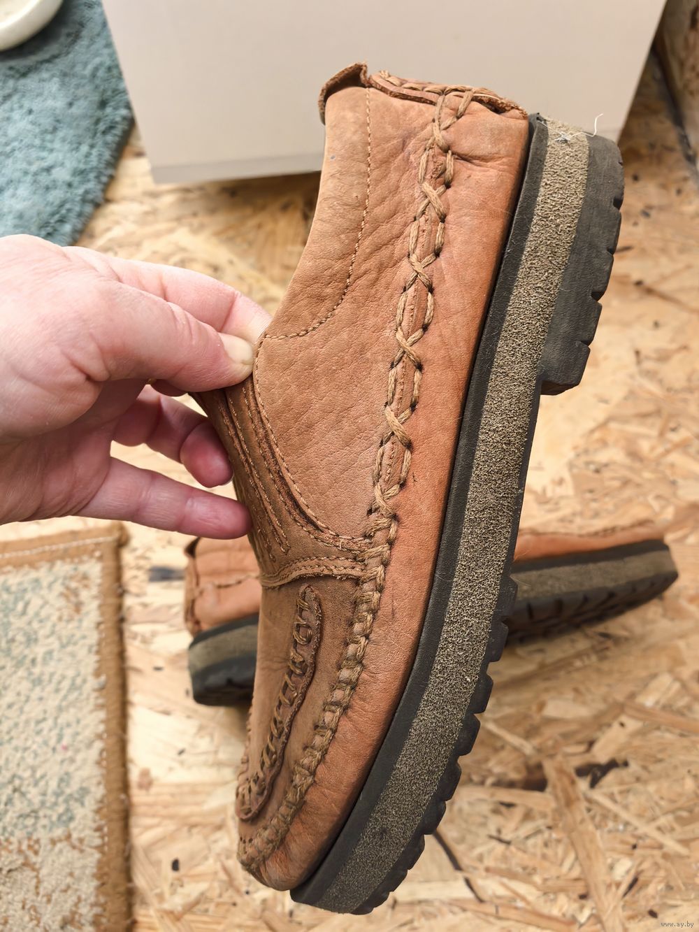 Абсолютно везде целые, крепкие и добротные туфли из мягкой натуральной кожи (нубук). Удобные. Подойдут на среднюю и широкую ногу. В отличном состоянии, чистые, аккуратные, только нет стелек.