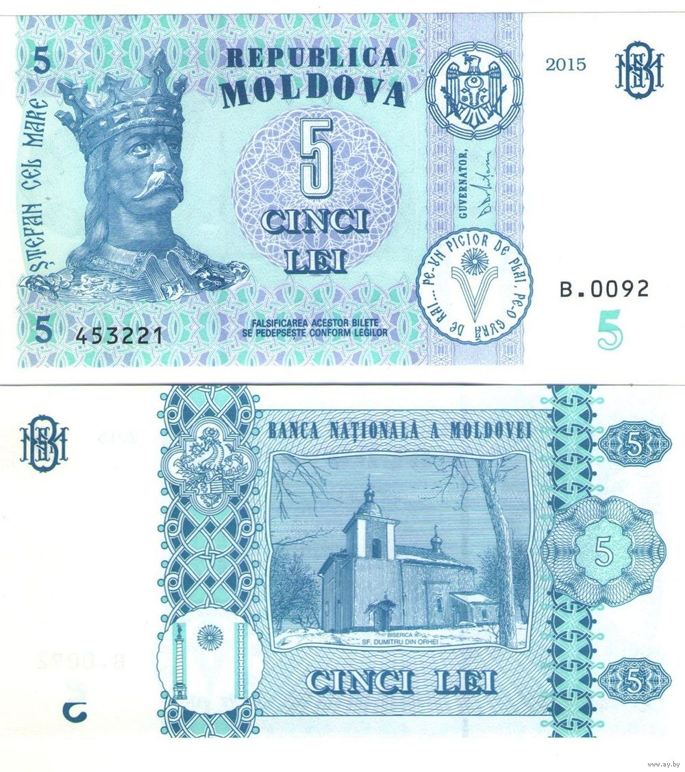 Молдавия (Молдова) 5 леев 2015 год UNC