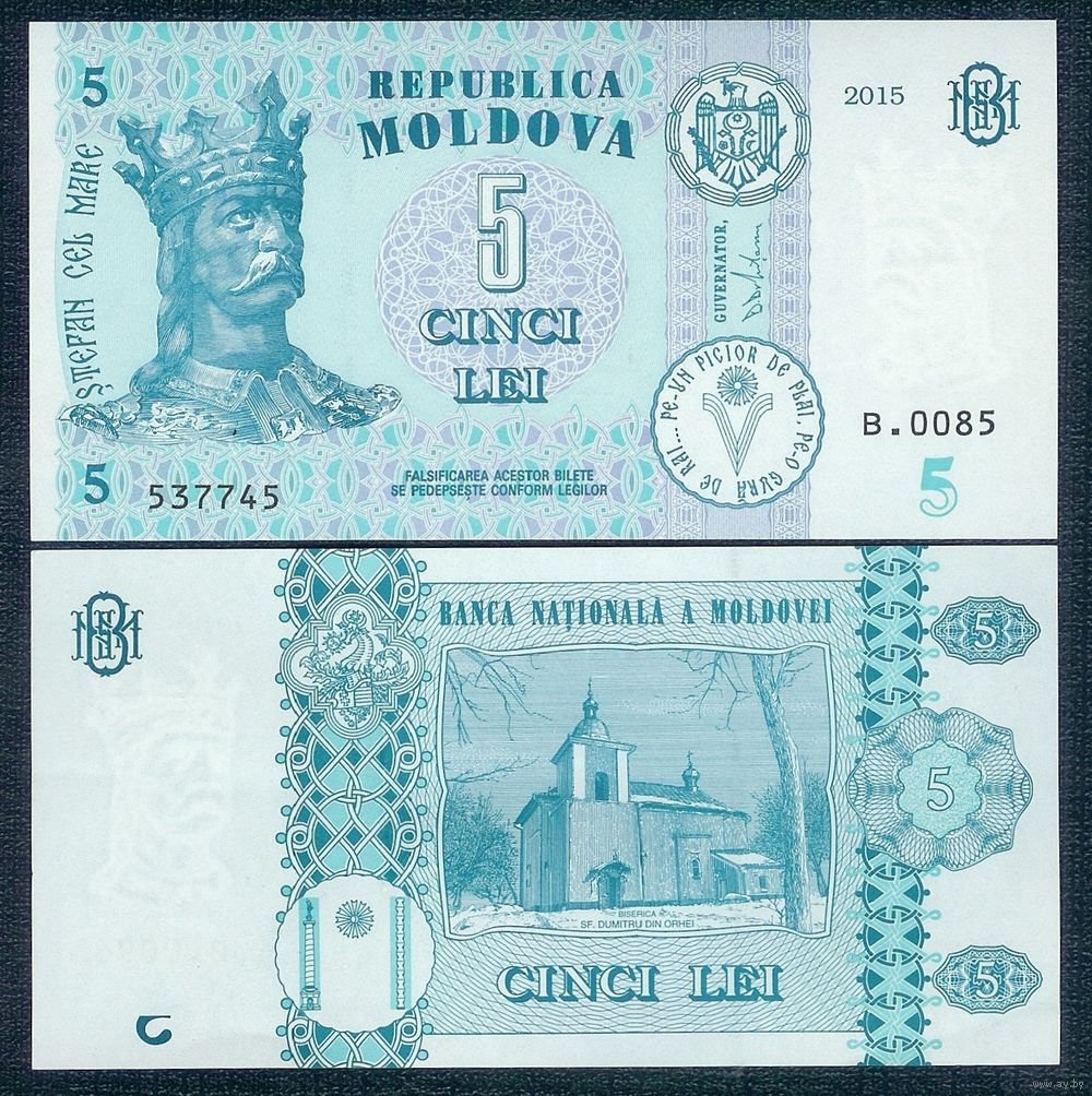 Молдавия (Молдова) 5 лей 2015 год, UNC