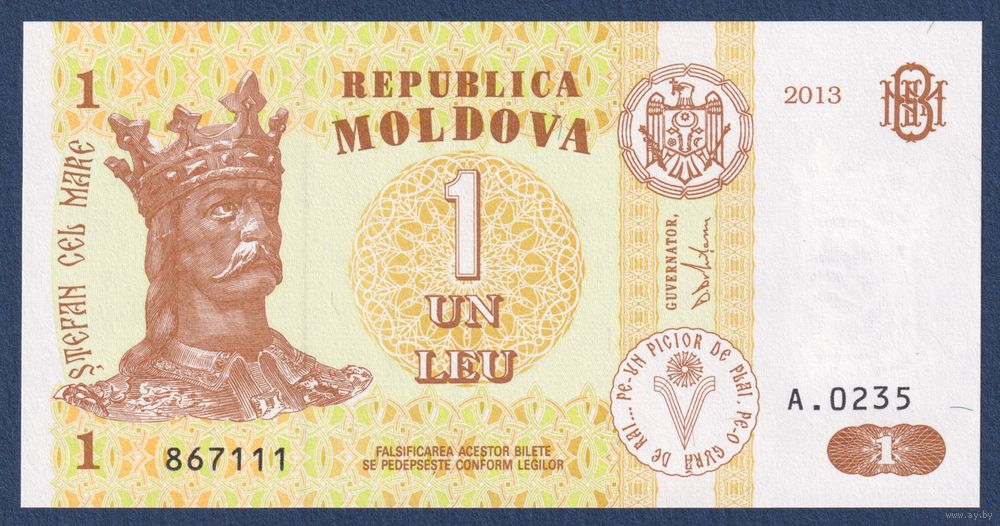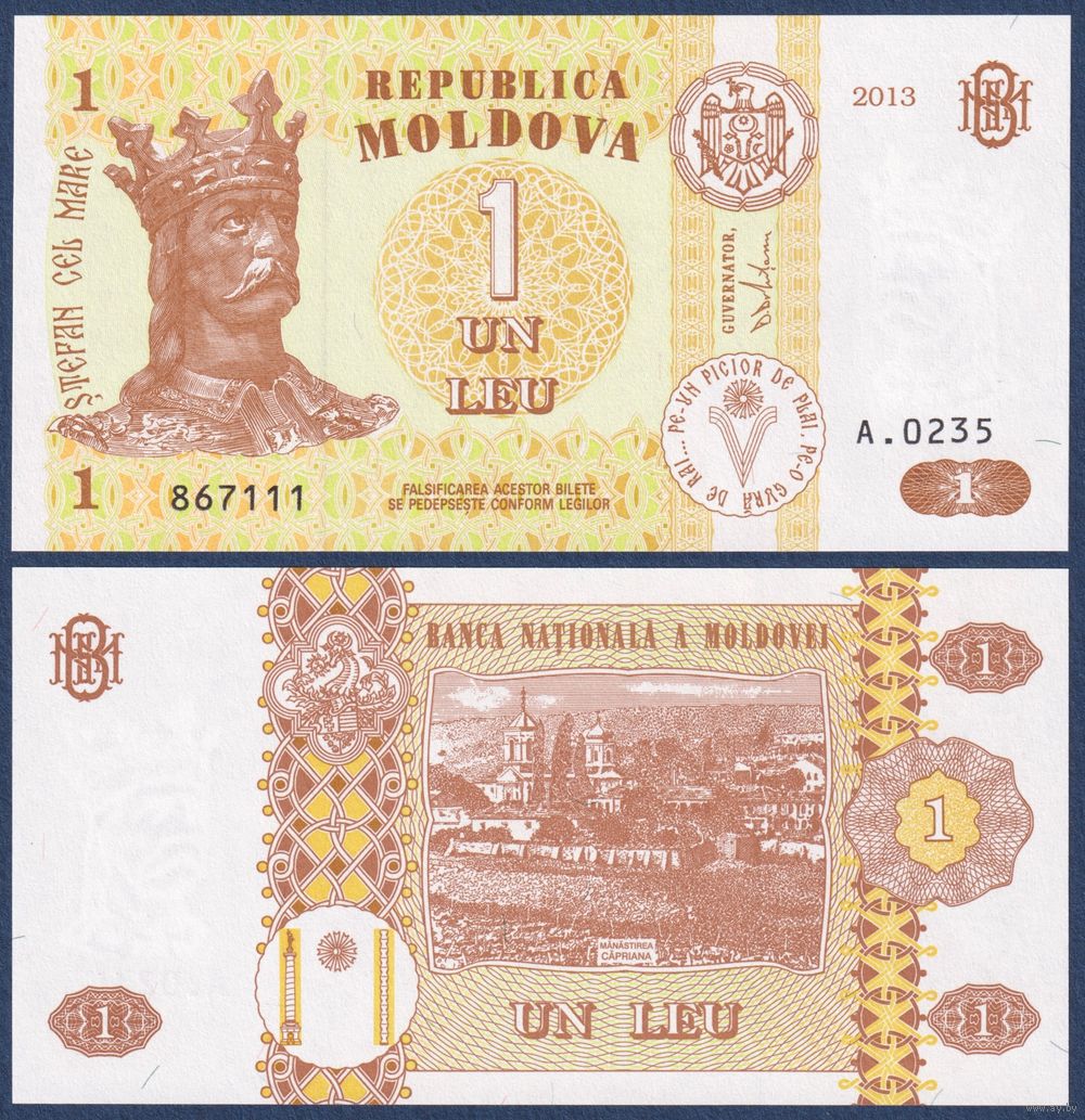 Молдова, 1 лей 2013 г., P-8i (A, Стефан III Великий, монастырь Кэприяна), UNC