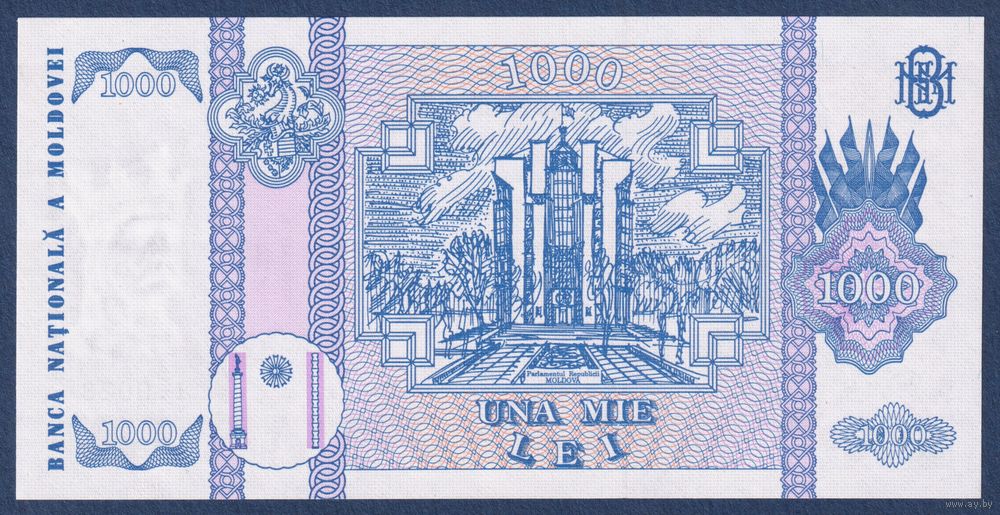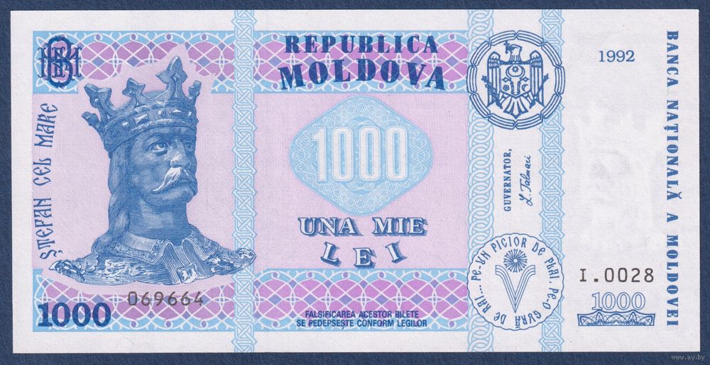 Молдова, 1000 лей 1992 г, P-18 (I, Стефан III Великий, президентский дворец в Кишиневе), UNC
