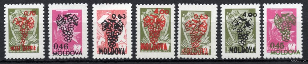Молдова 1992. Стандарт. Надпечатка гроздь винограда. 7 марок (12)