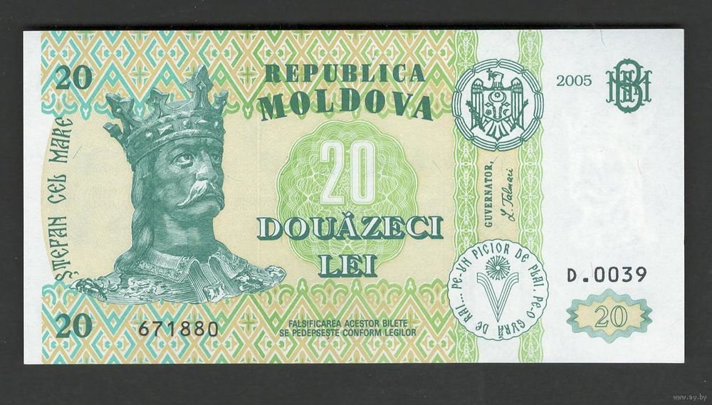 Молдова 20 лей 2005 года. Тип P-13g. Состояние UNC