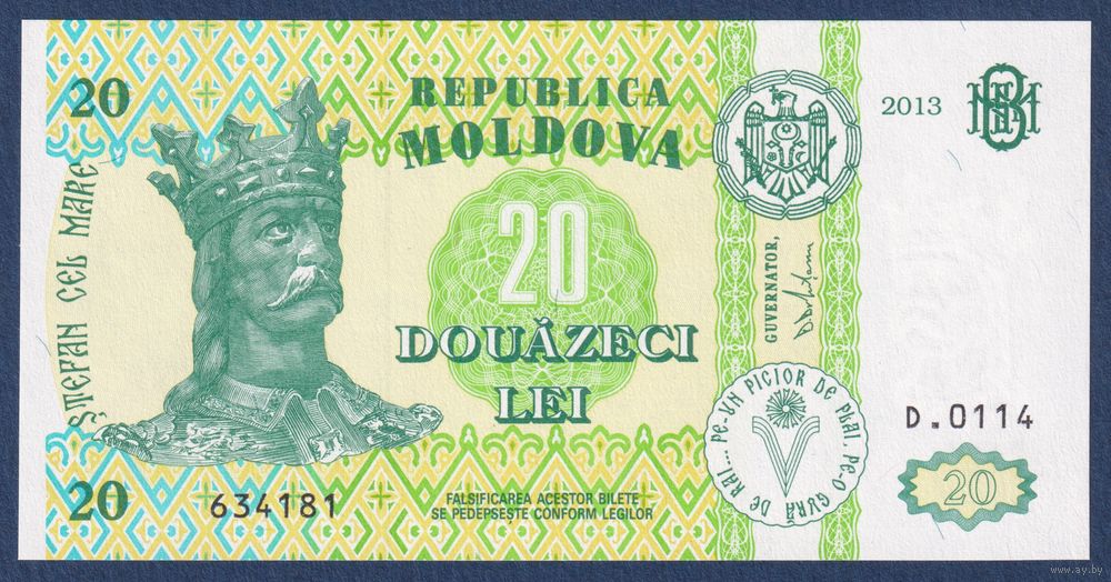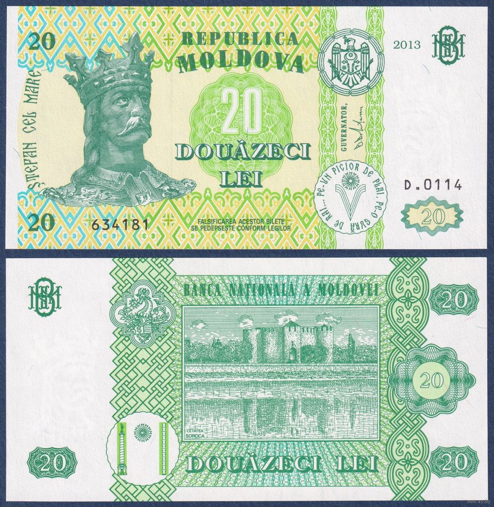 Молдова, 20 лей 2013 г, P-13j (D, Стефан III Великий, Сорокский замок), UNC