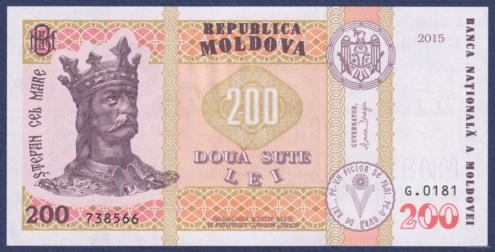 Молдова, 200 лей 2015 г, P-26(3) (G, господарь Стефан III Великий), UNC