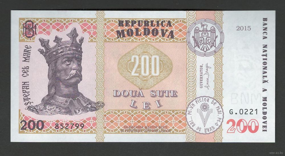 Молдова 200 лей 2015 года. Драгу. Тип P-26(3). Состояние UNC