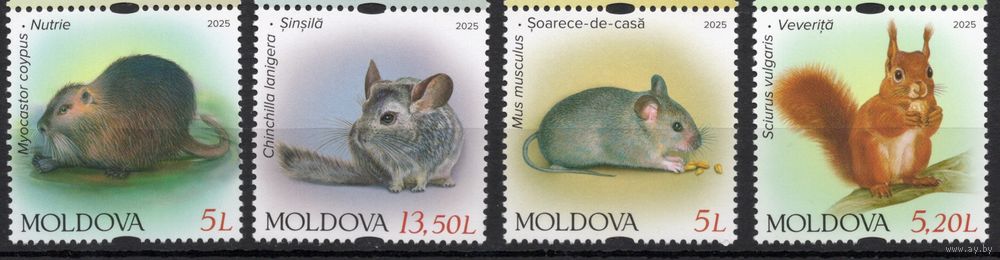Молдова 2025. Фауна. Грызуны. Мышь, нутрия, шиншилла, белка 4 марки (944)