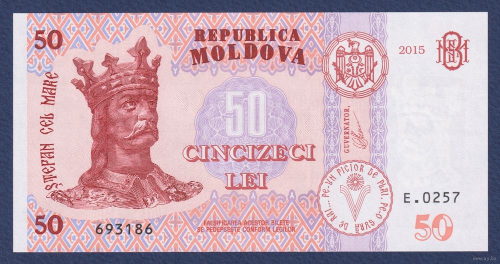 Молдова, 50 лей 2015 г, P-24(2) (E, Стефан III Великий, монастырь Гырбовец), UNC