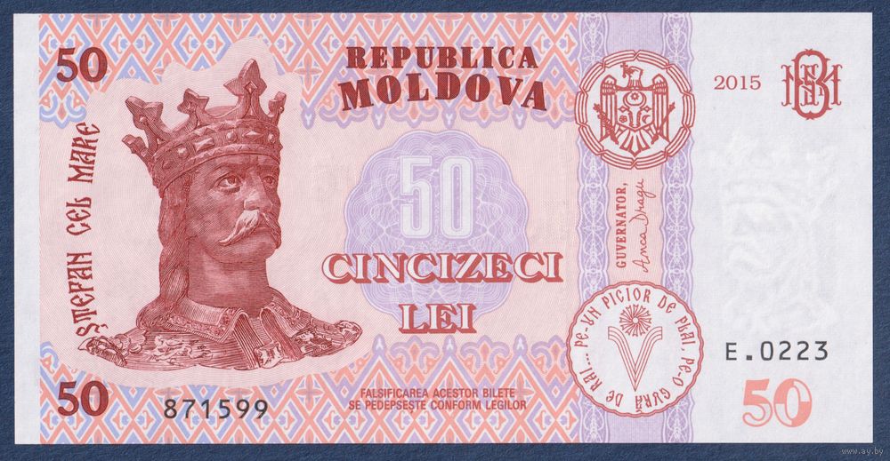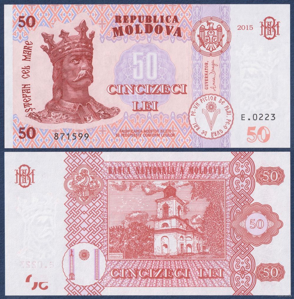 Молдова, 50 лей 2015 г, P-24(3) (E, Стефан III Великий, монастырь Гырбовец), UNC