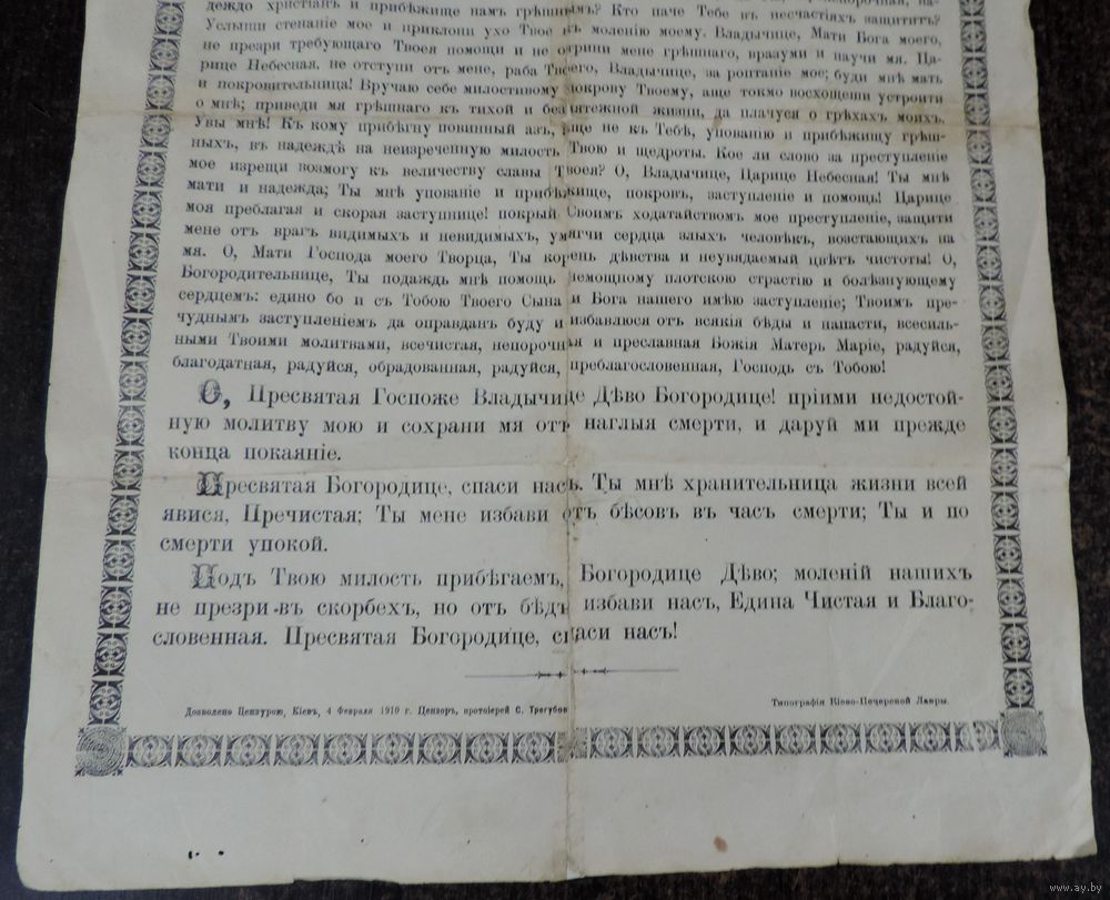 Молитва ко пресвятой Богородице предъ иконою ея, именуемою "Похвала Богоматери" 1910г. Киев. Размер 30-47 см.