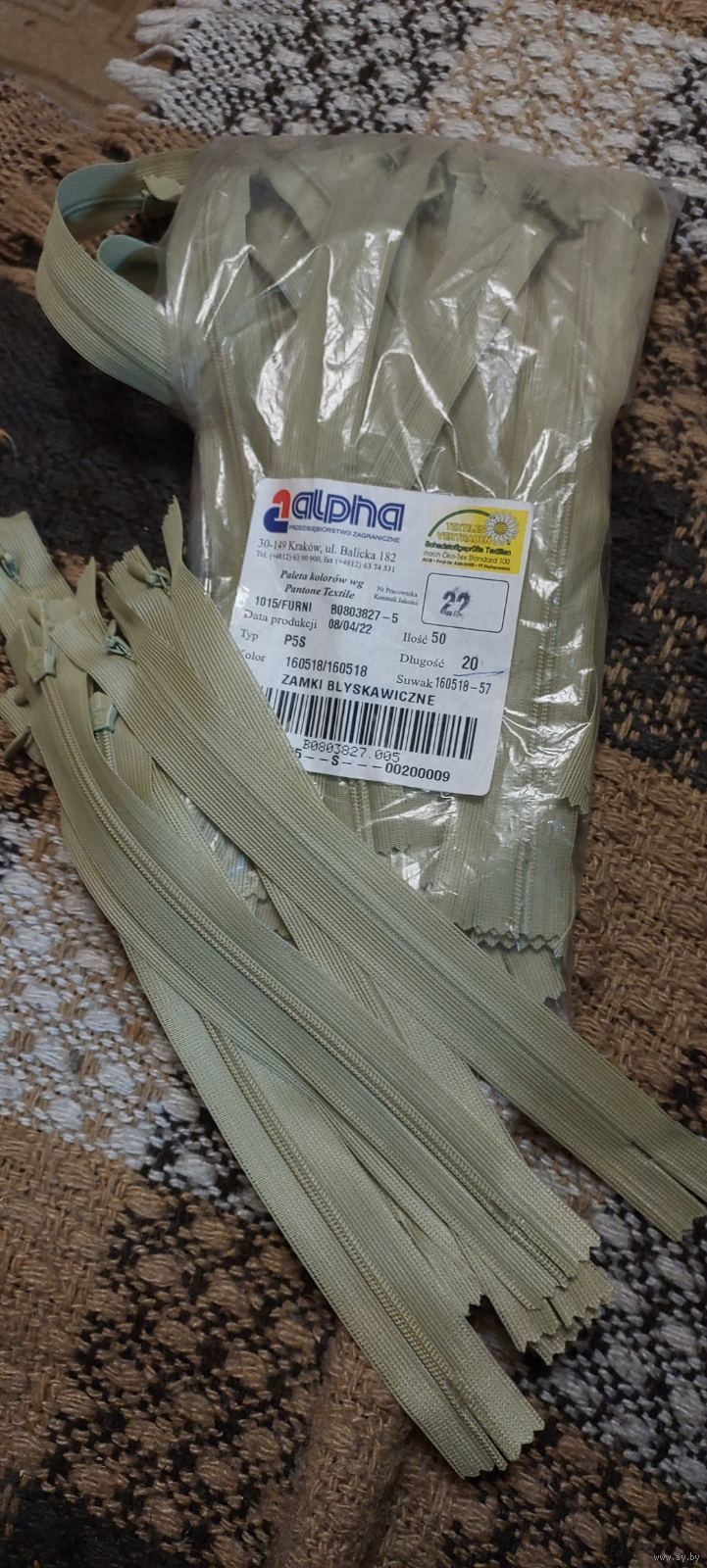 18. Молния 20 см, Alpha (Альфа), цвет 17 1009, в полутон бледно зеленый, потайная тип 3 (P5 S) неразъемная звено окрашено сл.57 , есть 106 шт. Цена: 1 руб.