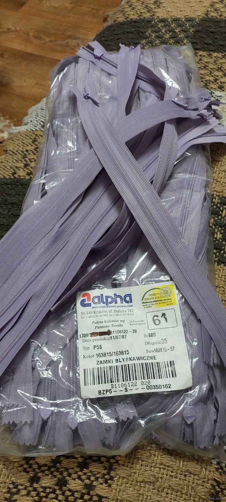 31. Молния Alpha (Альфа), 40 см, Цвет 163815, Сиреневый оттенок, потайная тип 3 (P5 S), неразъемная звено окрашено, сл.57 окрашен, 61 шт. (Цена: 1 руб/шт.)