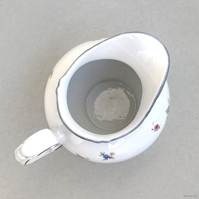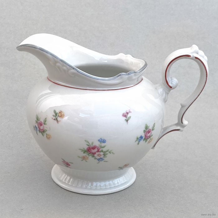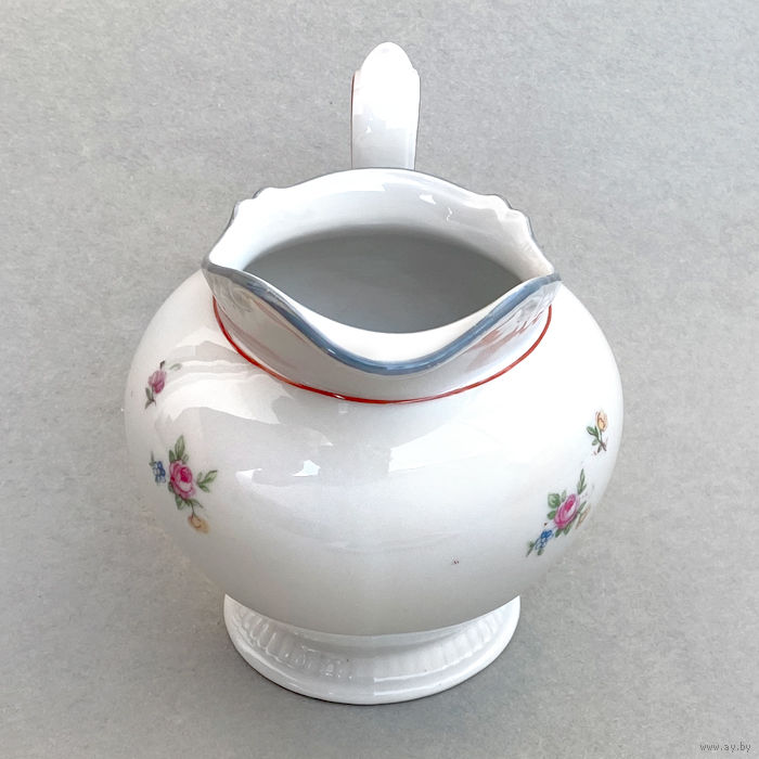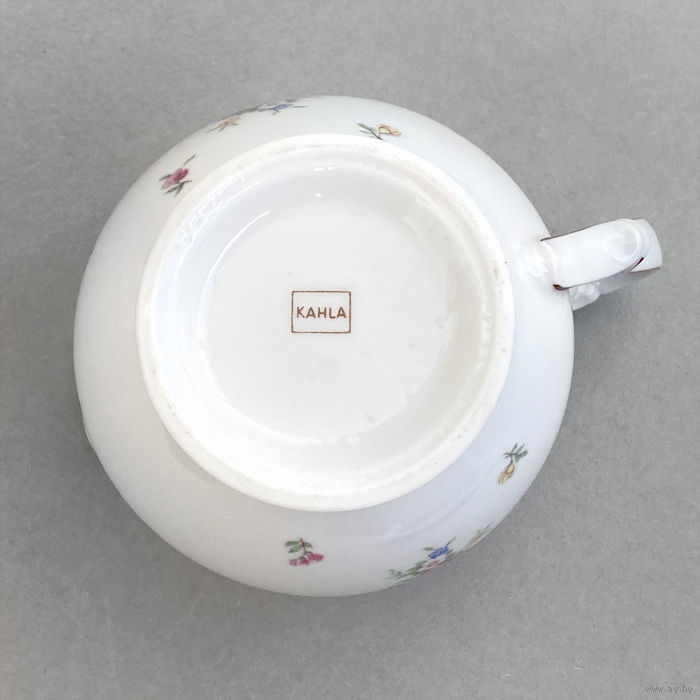 Молочник от чайного сервиза немецкого фарфорового завода KAHLA. Клеймо: название завода в прямоугольнике (использовалось с 1937 по 1956 гг.), Высота 11 см, ширина (от носика до ручки) 14,5 см. Состояние отличное, без дефектов.
