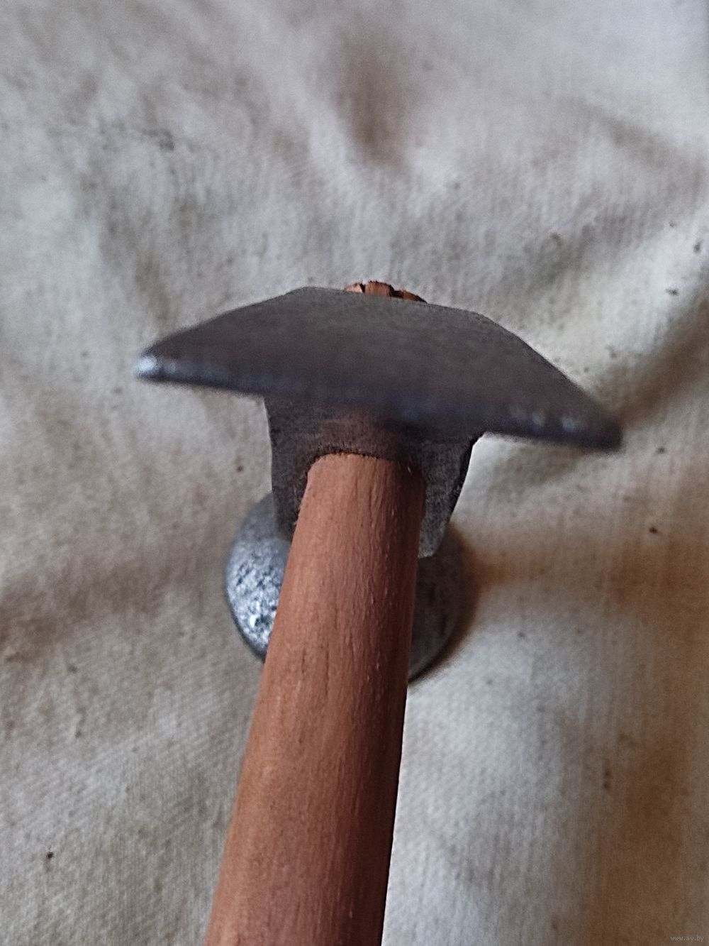 Молоток СССР , сапожный , сапожника. Полная очистка и реставрация , отличное состояние . Вес с рукояткой - 414 гр , длина молотка - 12,7 см , диаметр бойка - 3,6 см , длина рукоятки - 34,5 см , материал рукоятки - береза ( тонировка ). Осажен и заклинен прочно и надежно ( тройной клин ). Высылаю : Белпочта , Европочта.