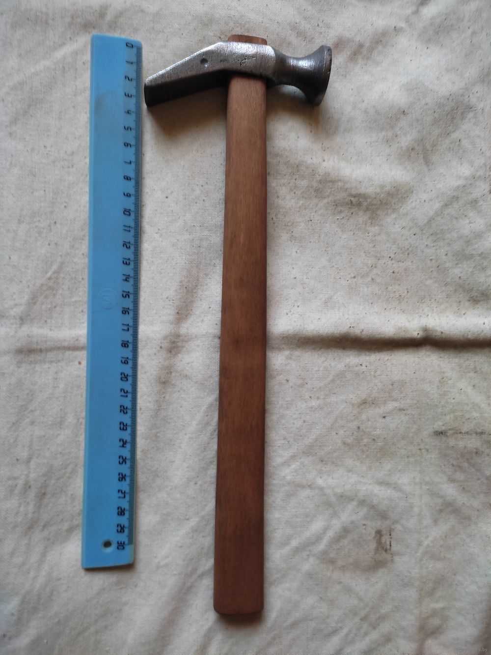 Молоток СССР , сапожный , сапожника. Полная очистка и реставрация , отличное состояние . Вес с рукояткой - 318 гр , длина молотка - 11,5 см , диаметр бойка - 3,4 см , длина рукоятки - 34,5 см , материал рукоятки - береза ( тонировка ). Осажен и заклинен прочно и надежно ( тройной клин ). Высылаю : Белпочта , Европочта.