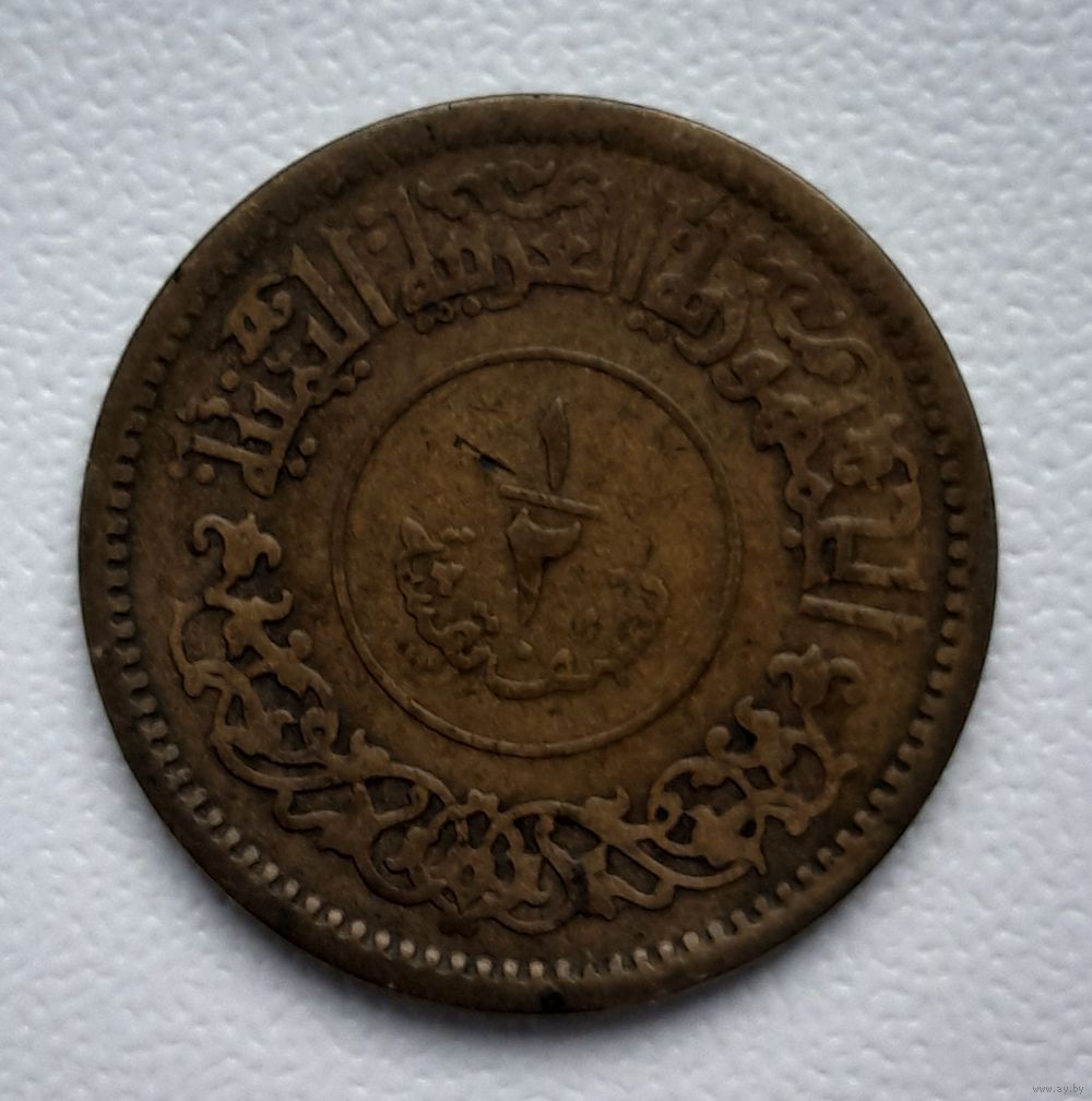 Монета 1/2 букши, Йеменская Арабская Республика (Северный Йемен), 1963 год. Состояние на фото. Стандартный аукцион без минимальной цены.