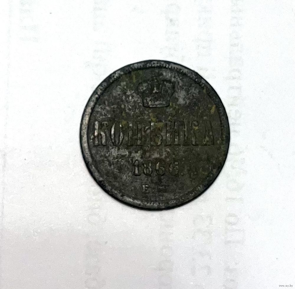 Монета. 1 копейка, 1866 г., ЕМ