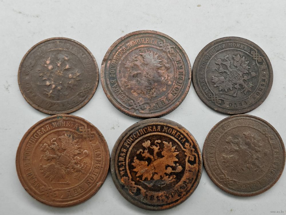 Монета 1 копейка, 2 копейки 1888-1916 гг. Царизм. Одним лотом 6 монет. С рубля
