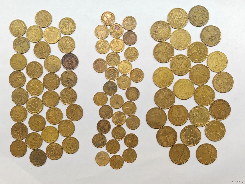 Монета 1 копейка, 2 копейки, 3 копейки, 1926-1970 гг. Одним лотом. С рубля