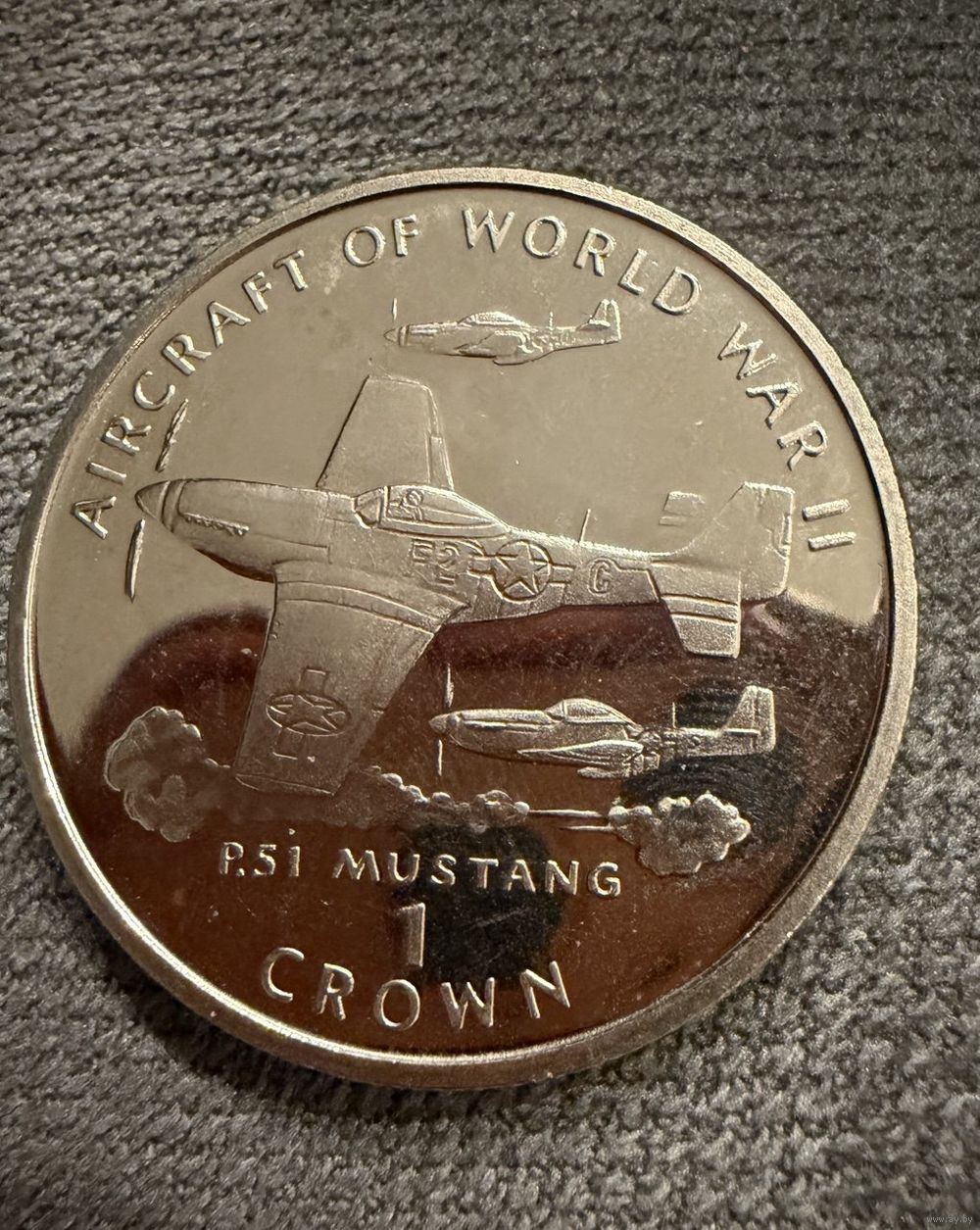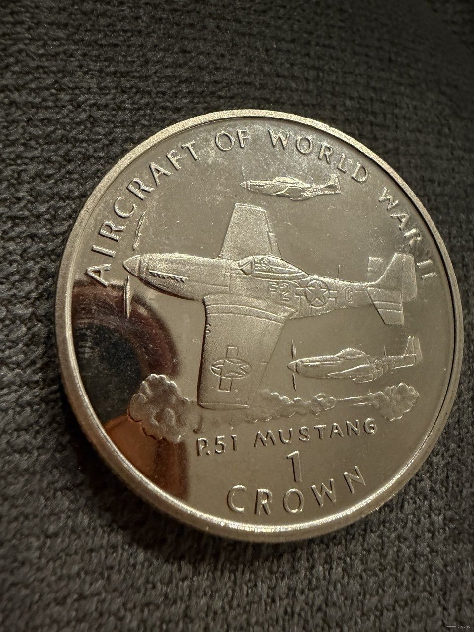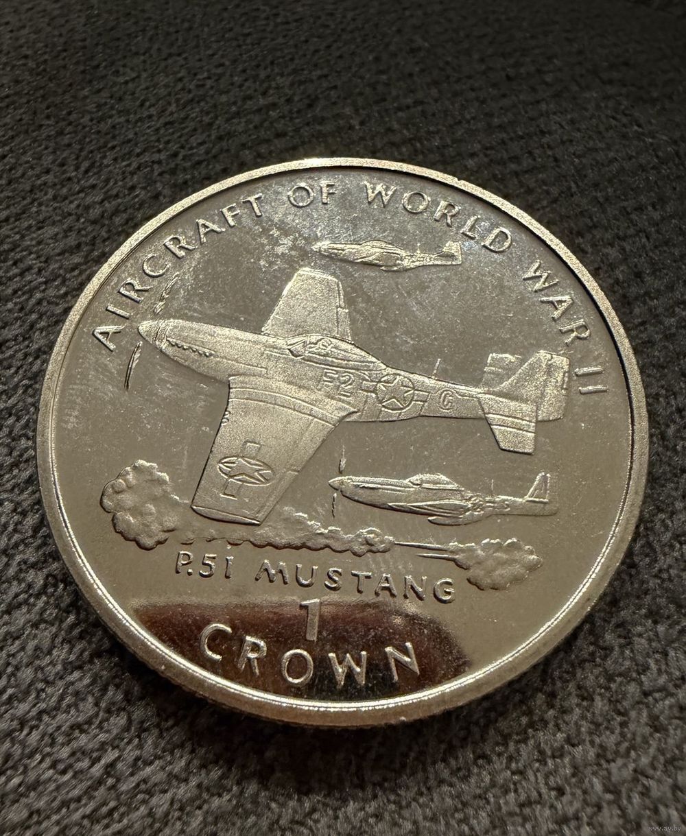 Монета. 1 крона Острова Мэн Авиация Второй Мировой войны P-51 Mustang 1995