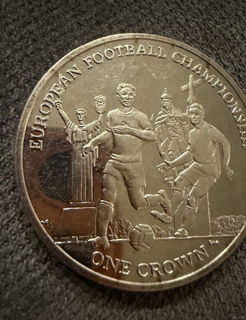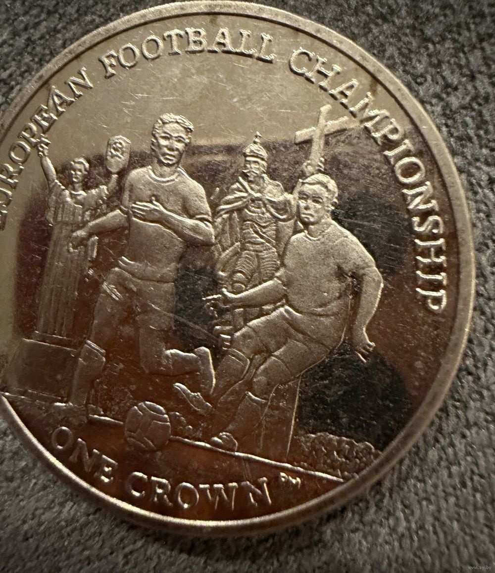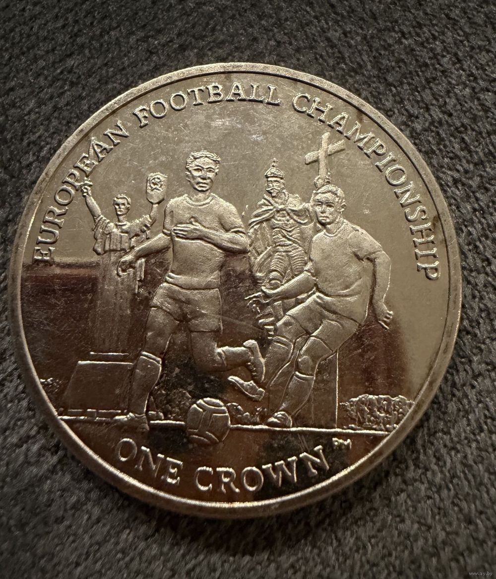 Монета. 1 крона Острова Мэн выпущенная в 2012 году в честь Чемпионата Европы по футболу