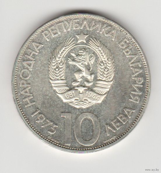 Монета 10 левов 1975 года. Болгария. Серебро.