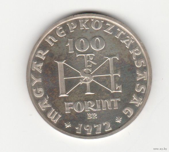Монета 100 форинтов 1972 года. Венгрия. Серебро
