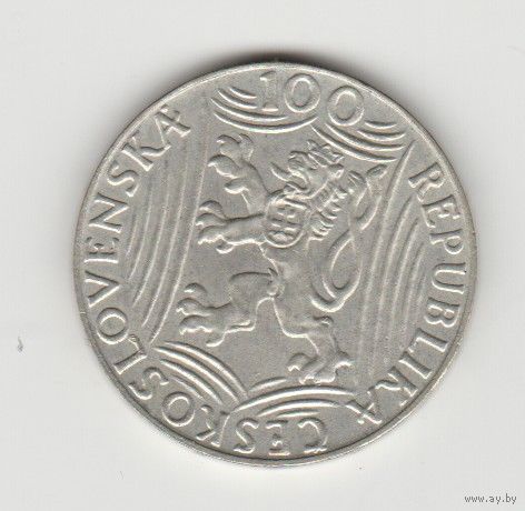 Монета 100 крон 1949 года. Чехословакия. Сталин. Серебро.