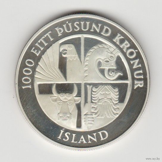Монета 1000 крон 1974 года. Исландия. Серебро.