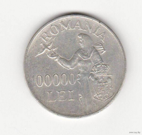 Монета 100000 лей 1946 года. Румыния. Серебро.