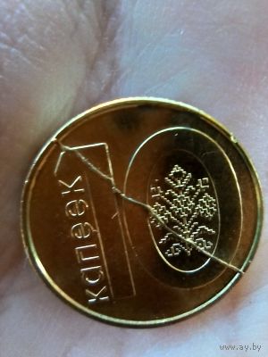 монета номиналом 10коп.видимый реальный брак с одной стороны. всё на фото. | |