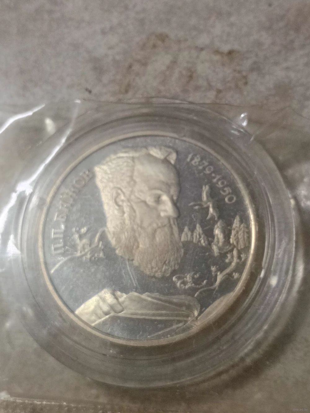 Памятная монета 2 рубля выпущена в 1994 году к 115 - летию со дня рождения русского писателя Бажова Н.Н. Капсула не вскрывалась, заводская упаковка повреждена