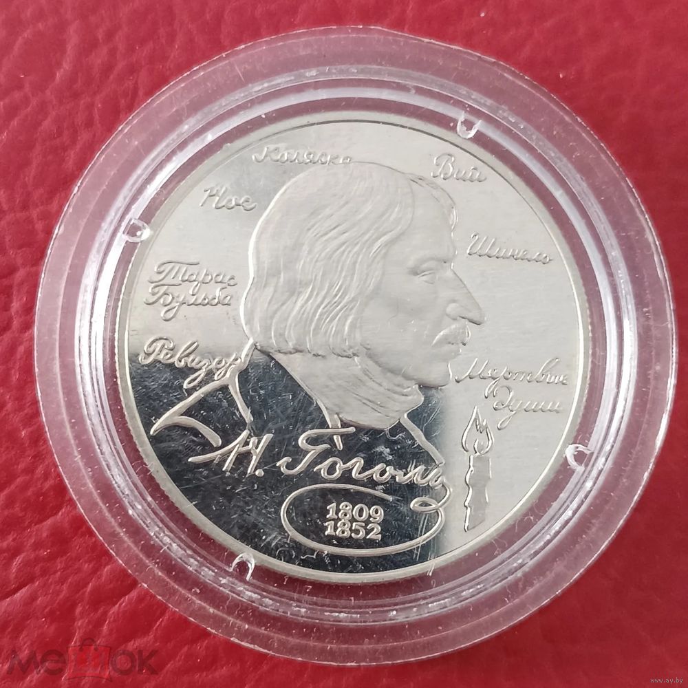 Памятная серебряная монета выпущенная к 185-летию Н.В. Гоголя.