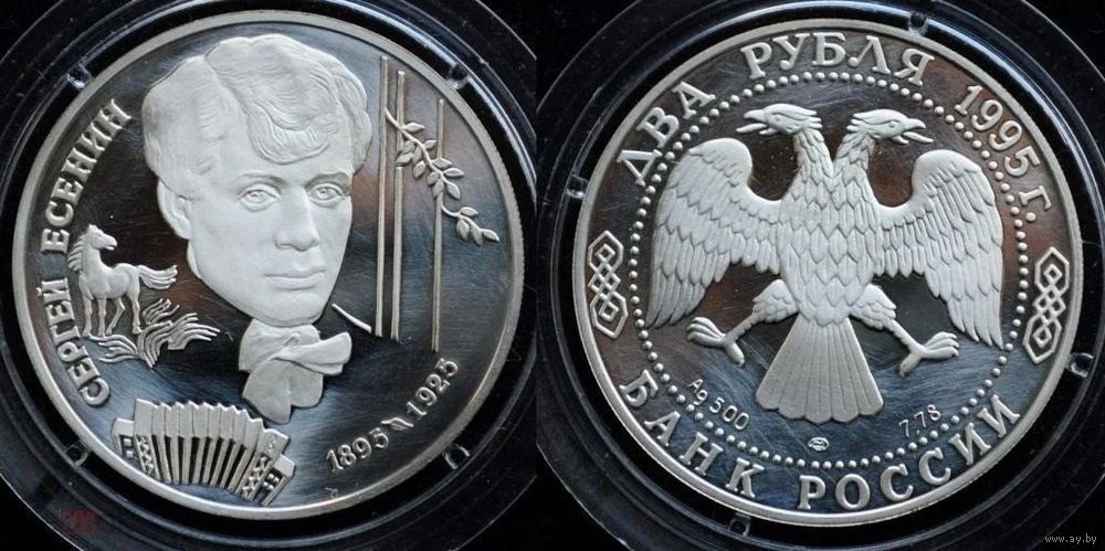 Памятная монета 2 рубля выпущена к 100-летию со дня рождения поэтаСергея Александровича Есенина.