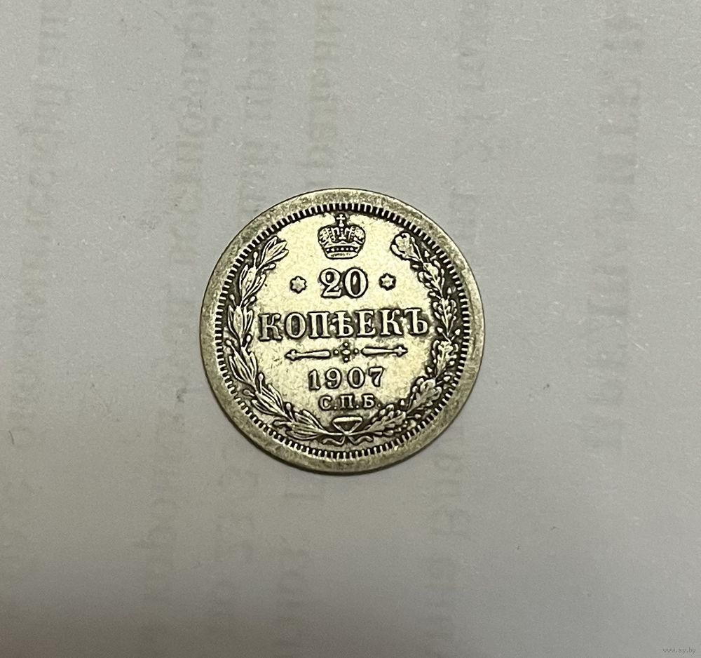 Монета. 20 копеек, 1907 г., эб